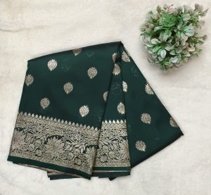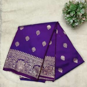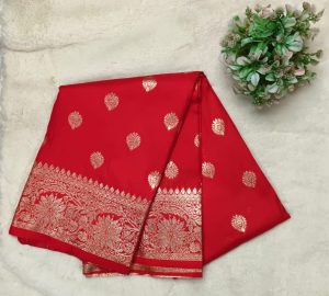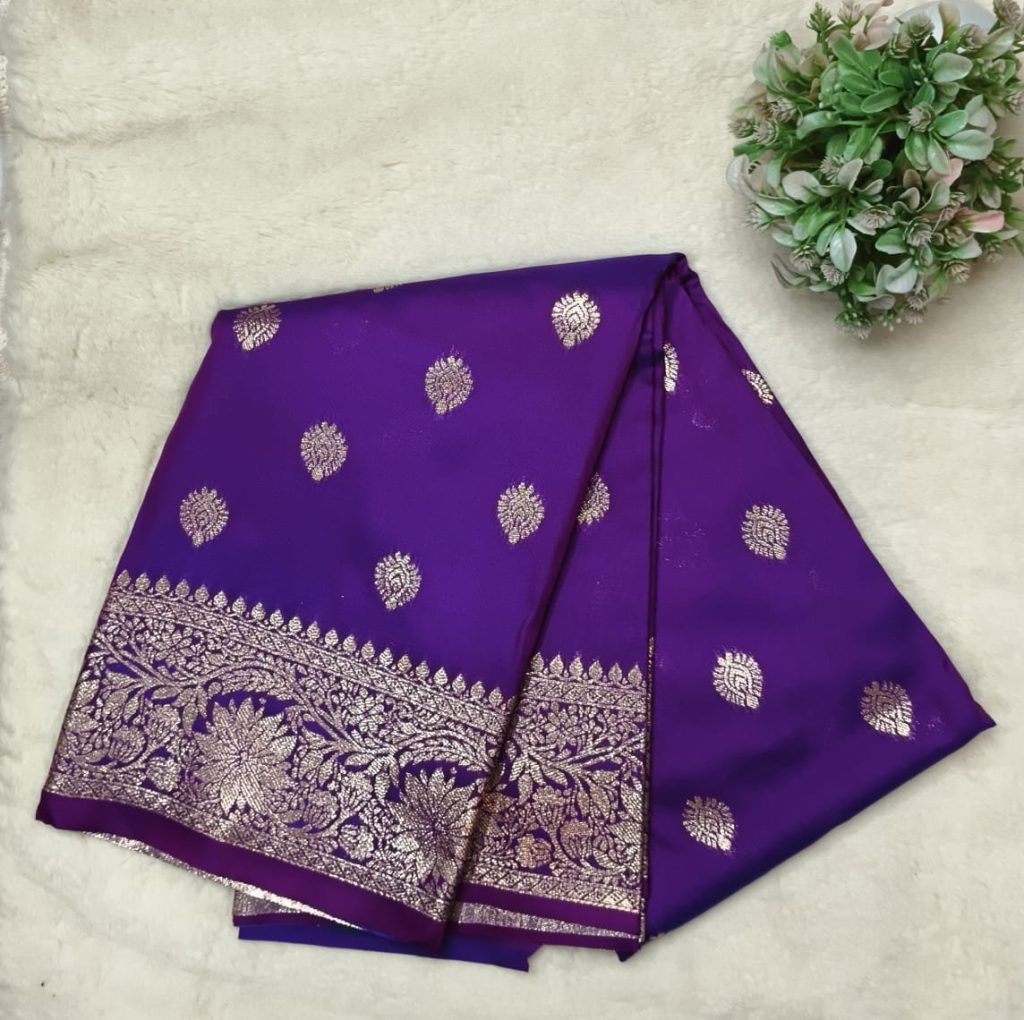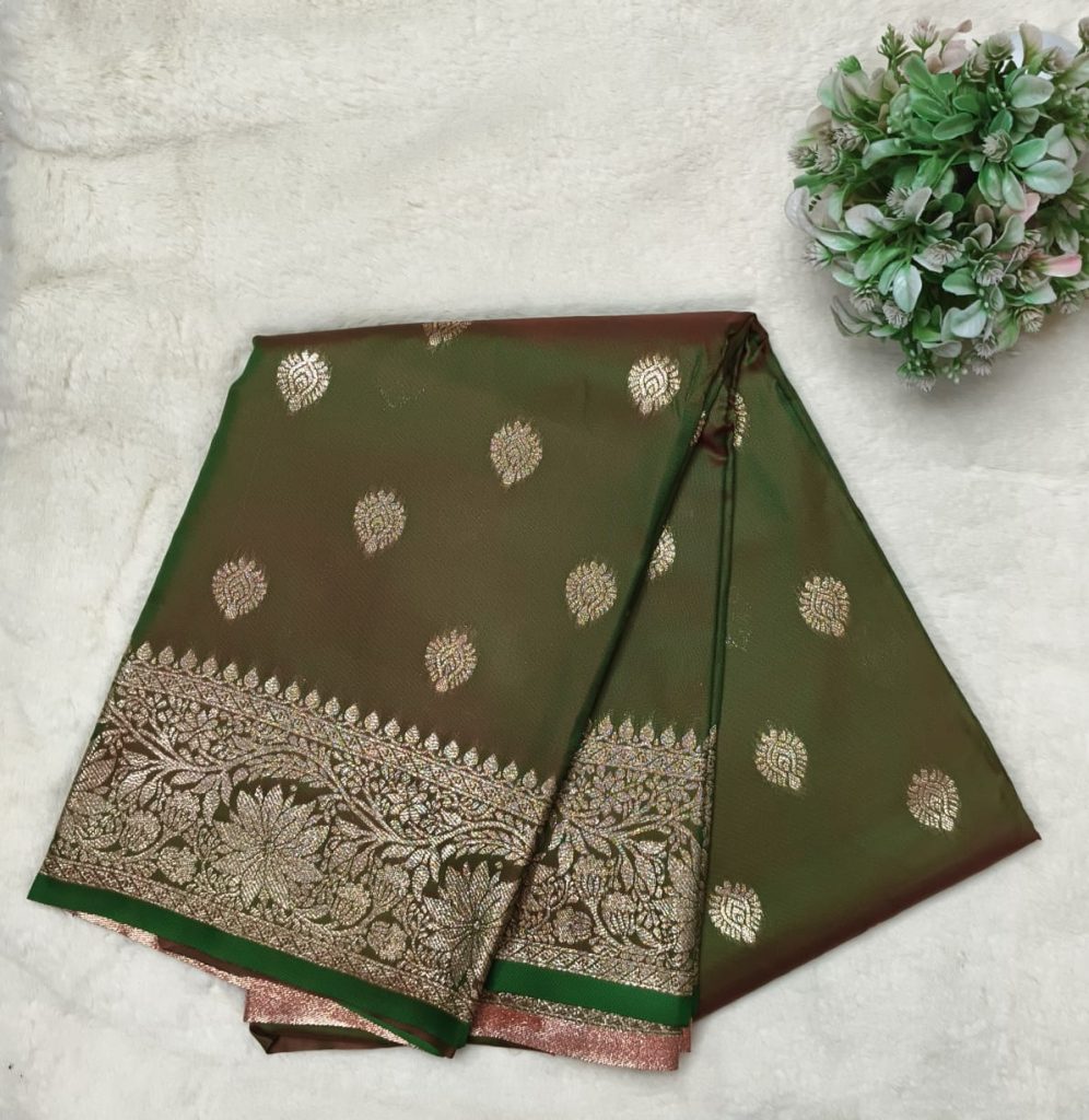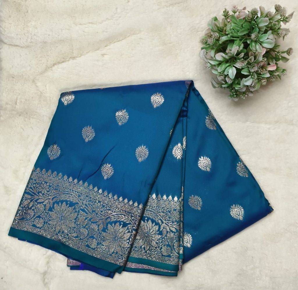 Beautiful Banarasi Katan butta all over body Jacquard border with attached BP