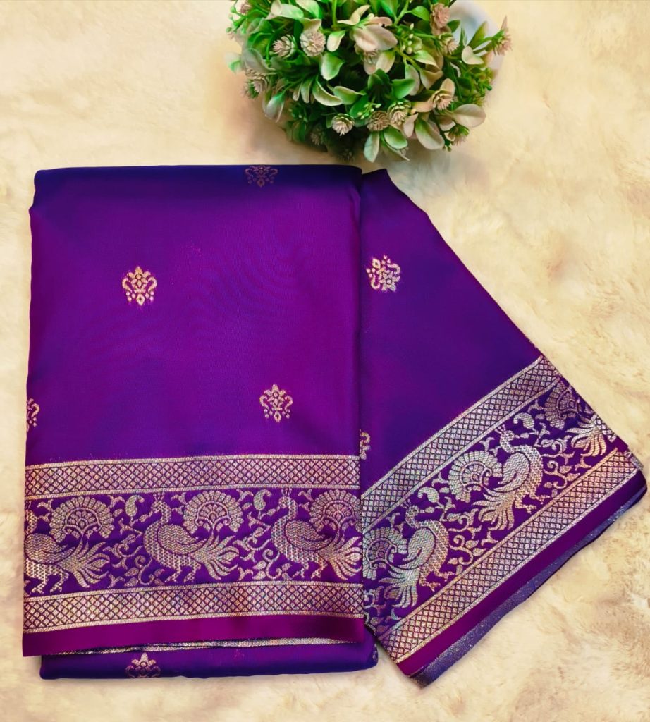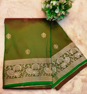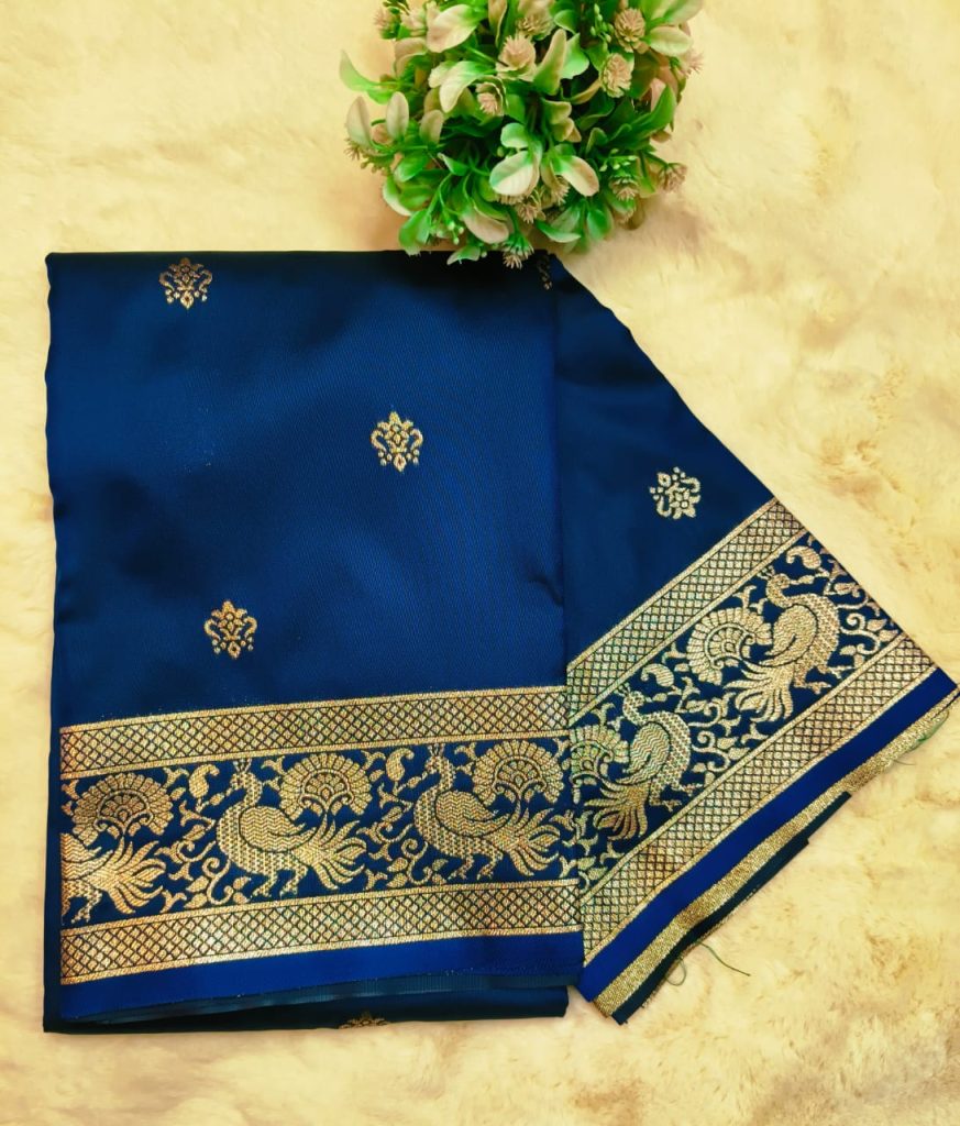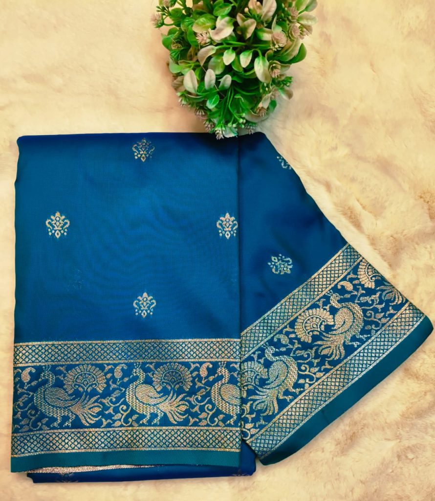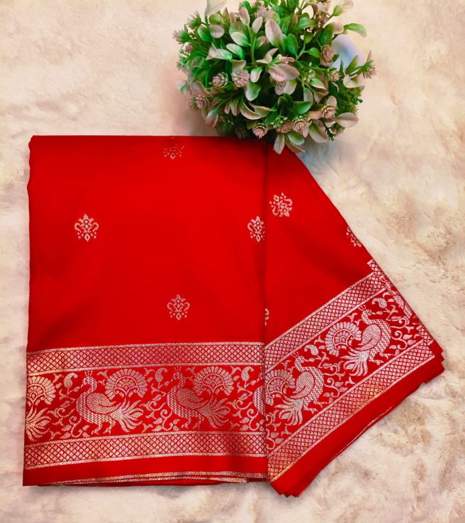 Beautiful Banarasi Katan butta all over body Jacquard border with attached BP
