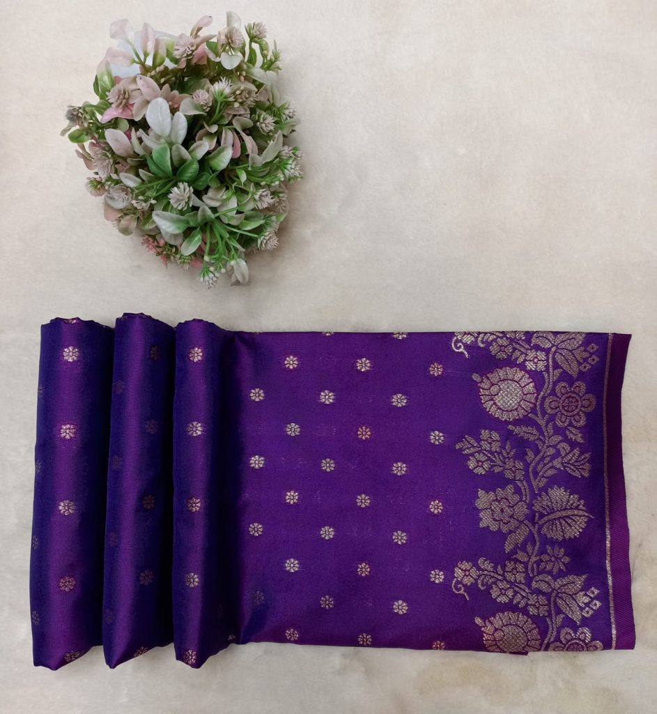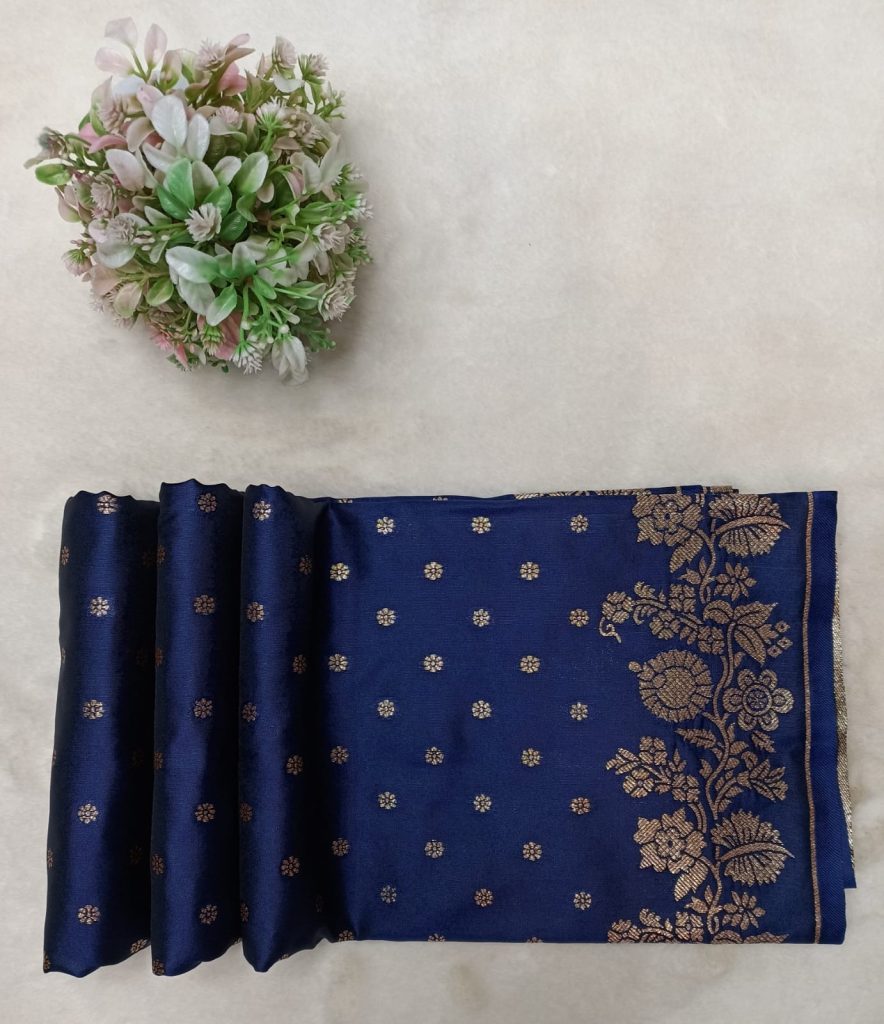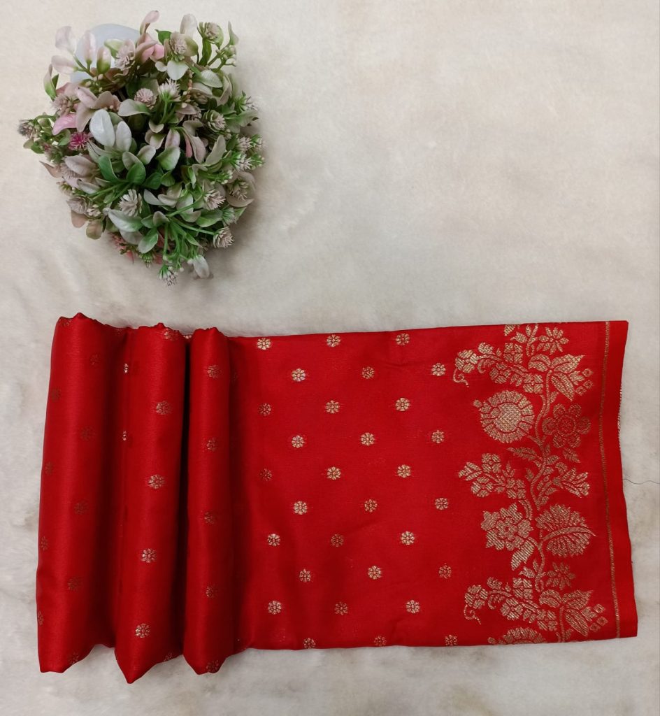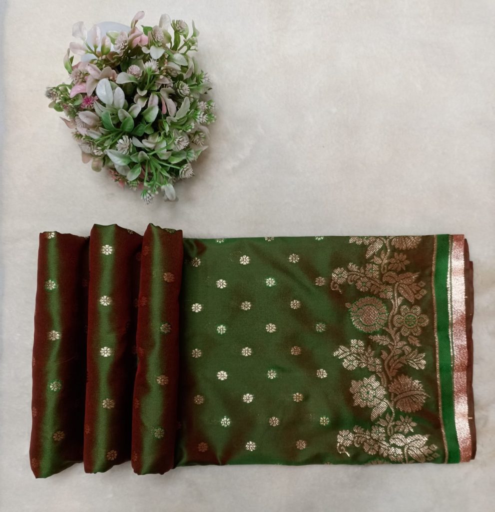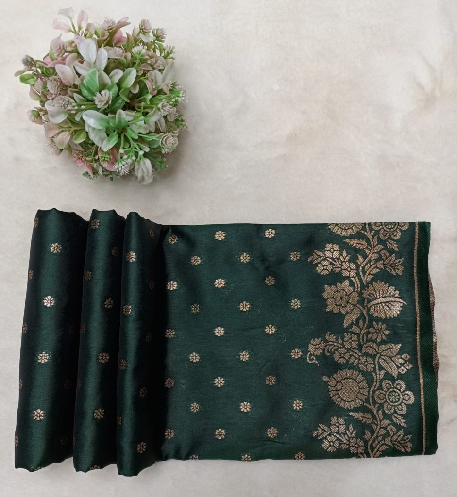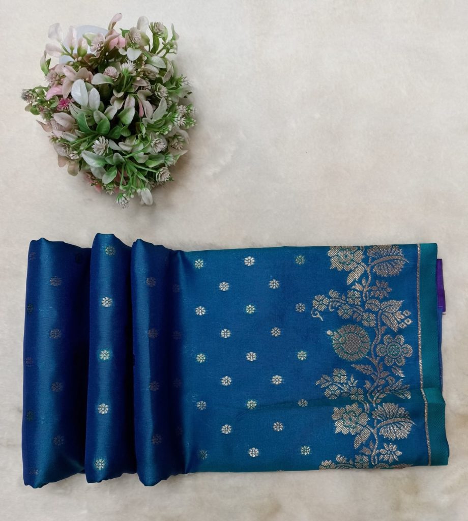 Beautiful Banarasi Katan butta all over body Jacquard border with attached BP