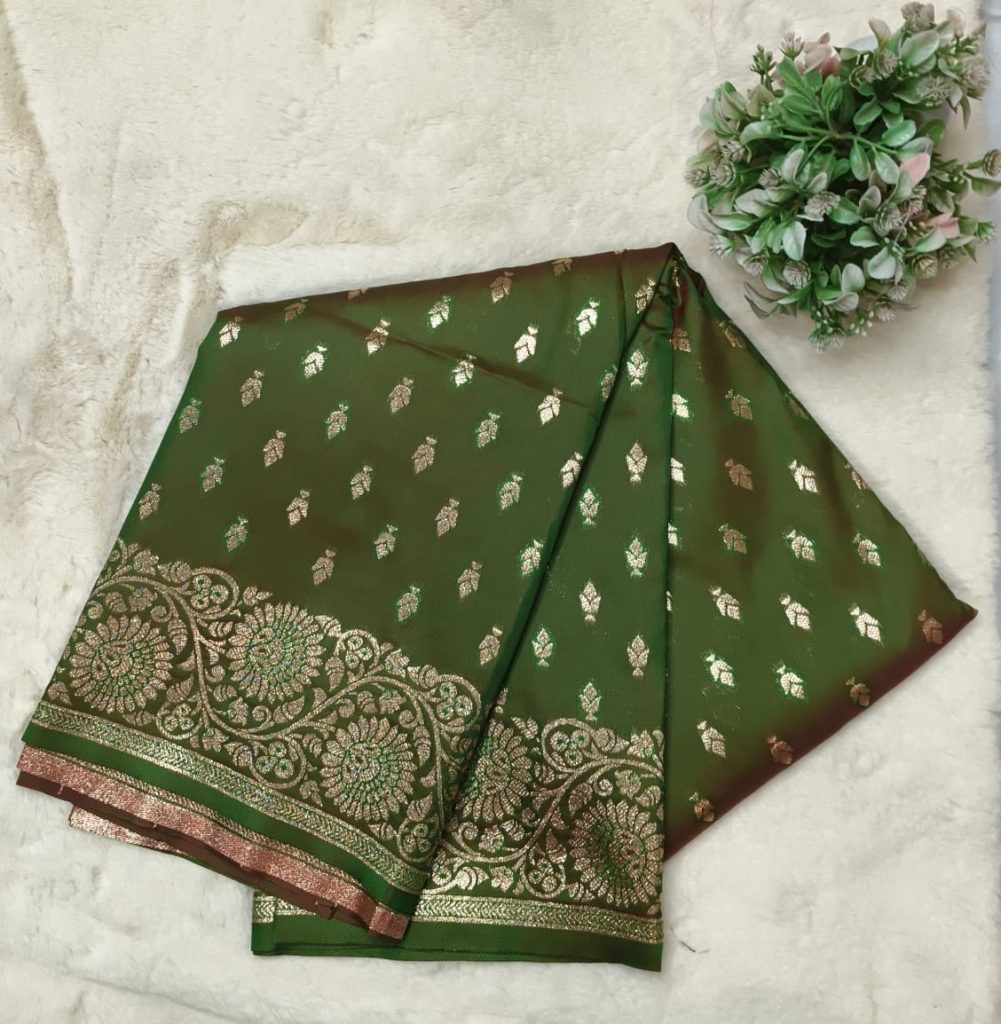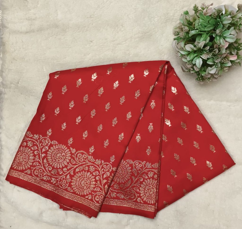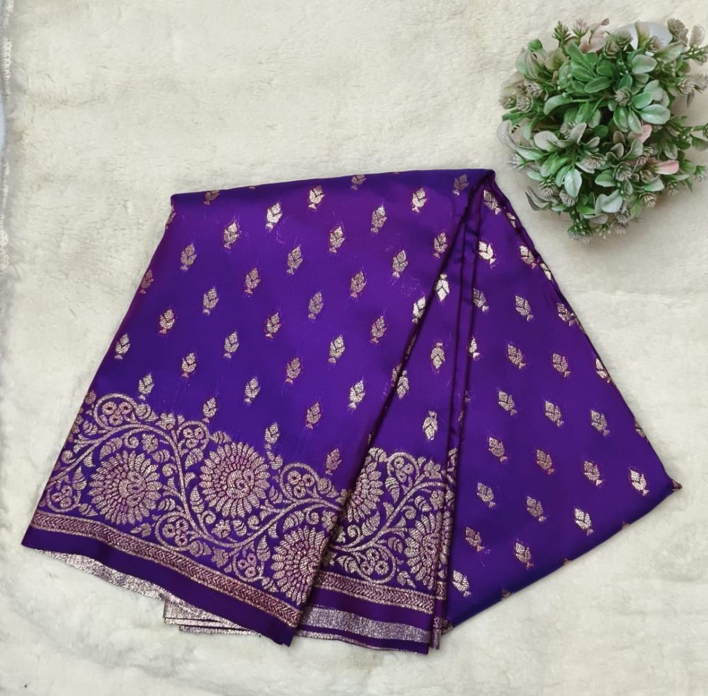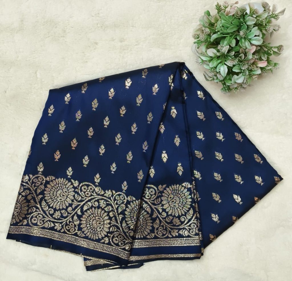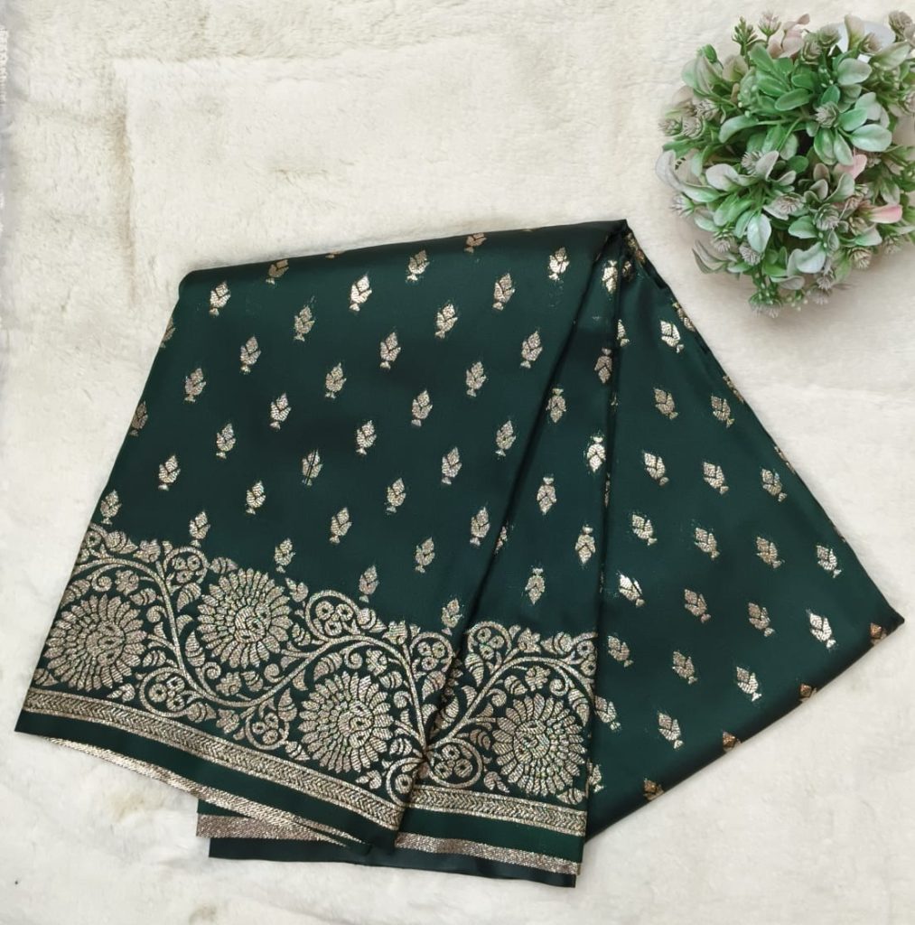 Beautiful Banarasi Katan butta all over body Jacquard border with attached BP