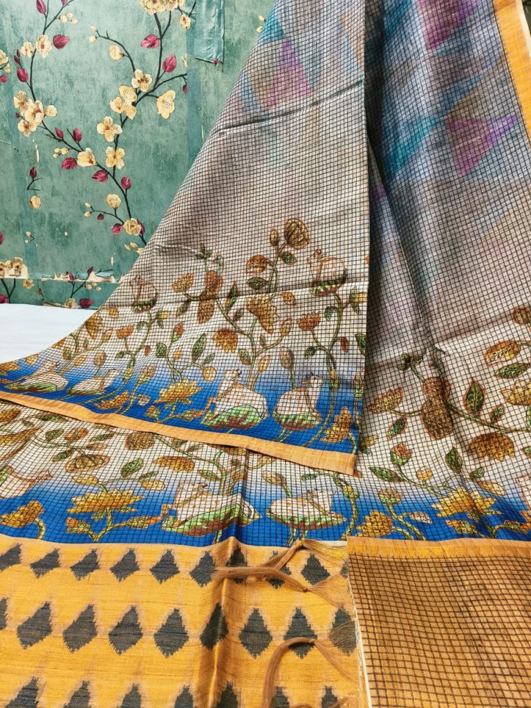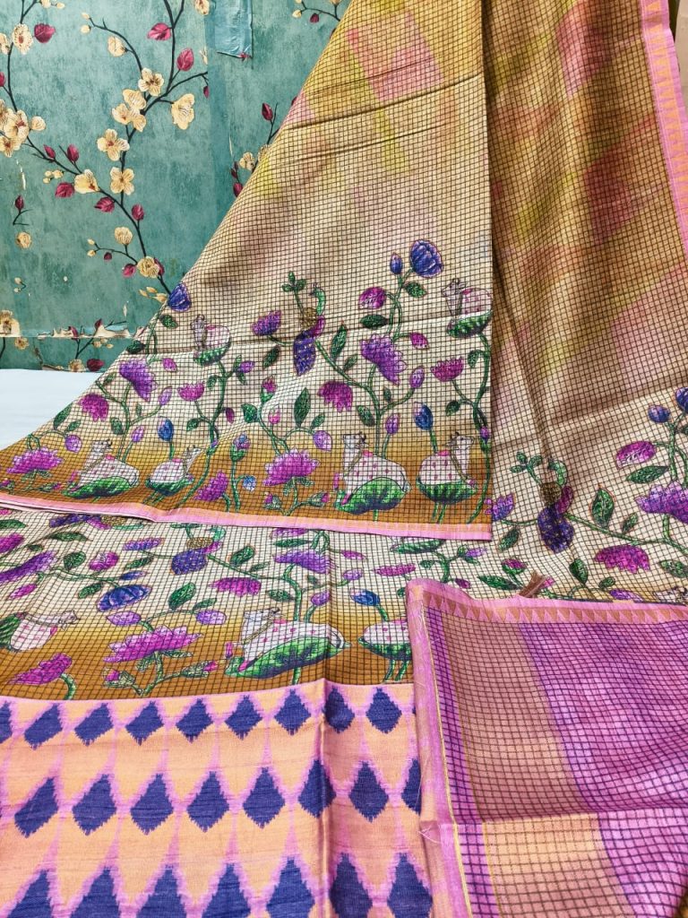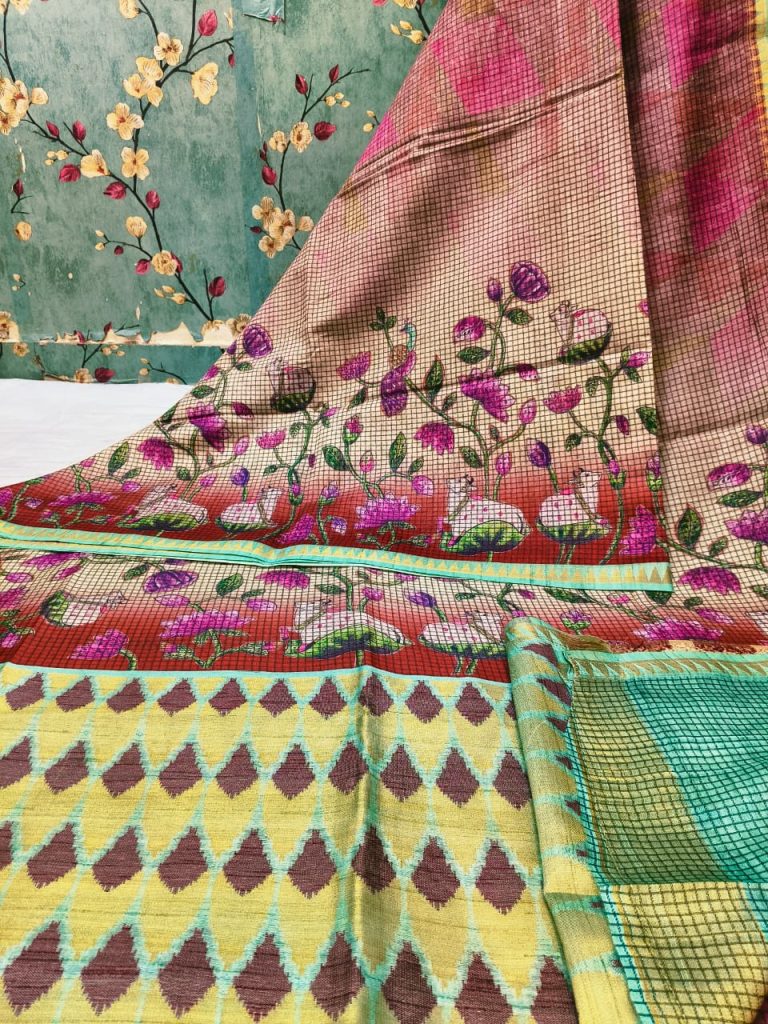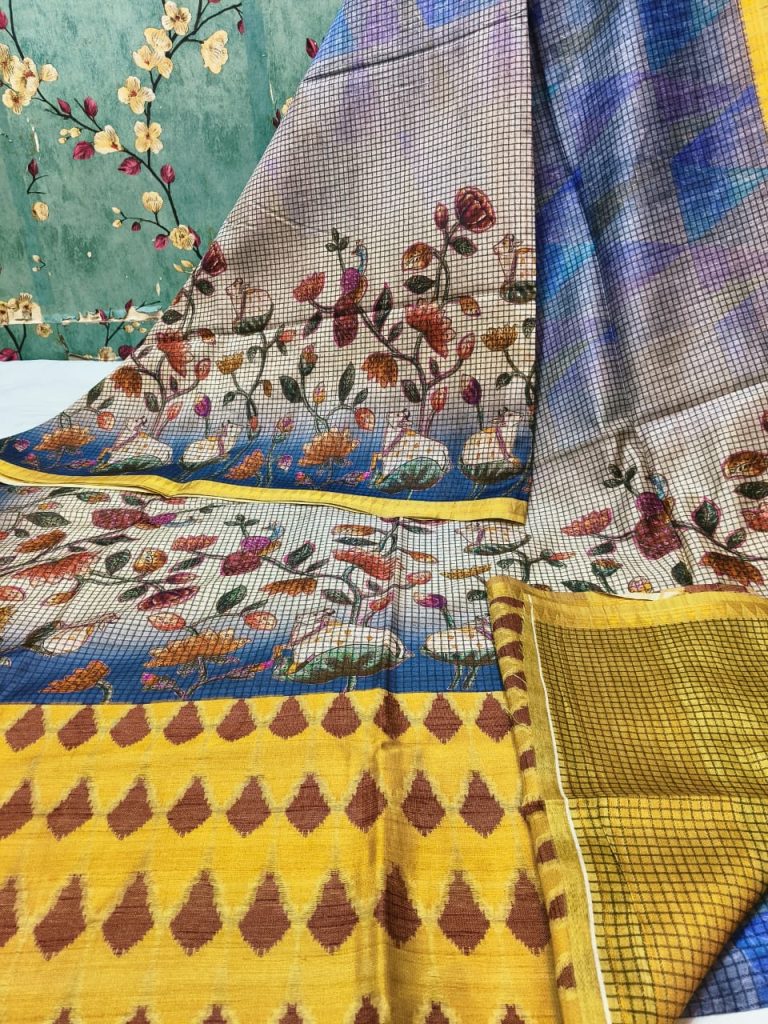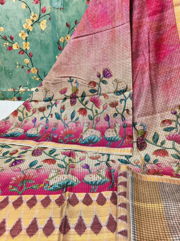 Beautiful Kota Tusshar gicha silk saree with blouse exclusive digital weaving very smooth feel