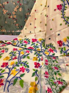 Beautiful muslin Jamdani weaving all over body with butta and elegance pallu with attached BP