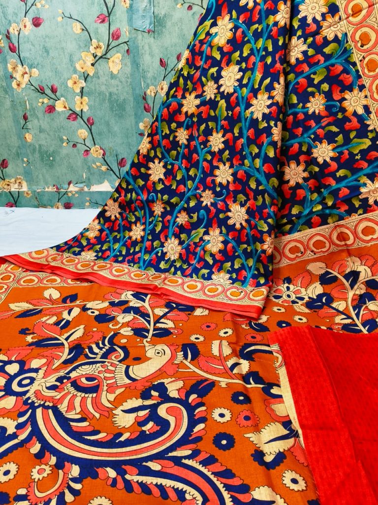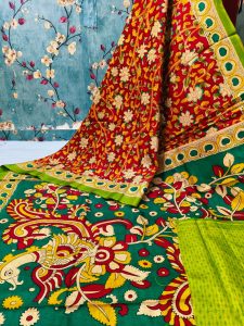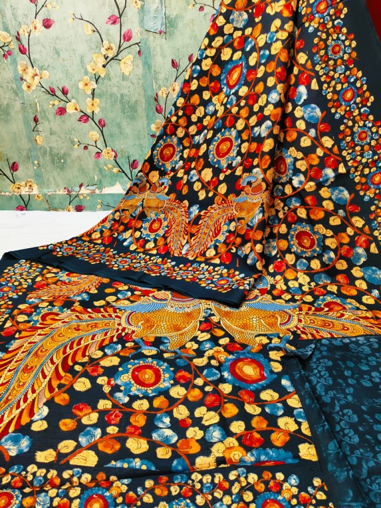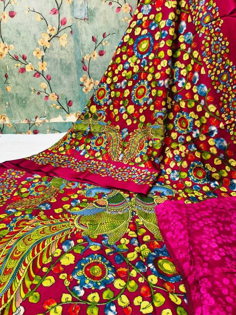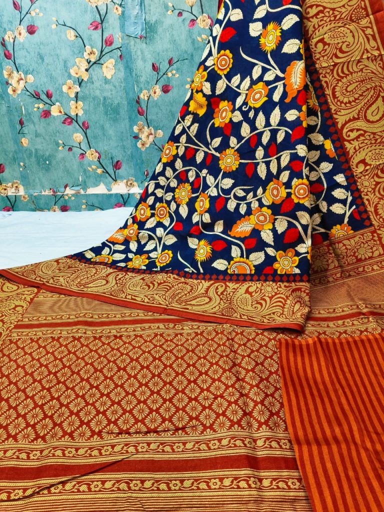 Beautiful soft manipuri sarees with kalamkari print attached printed bp