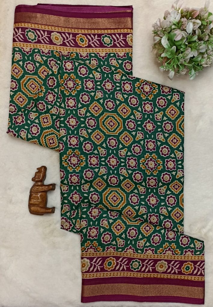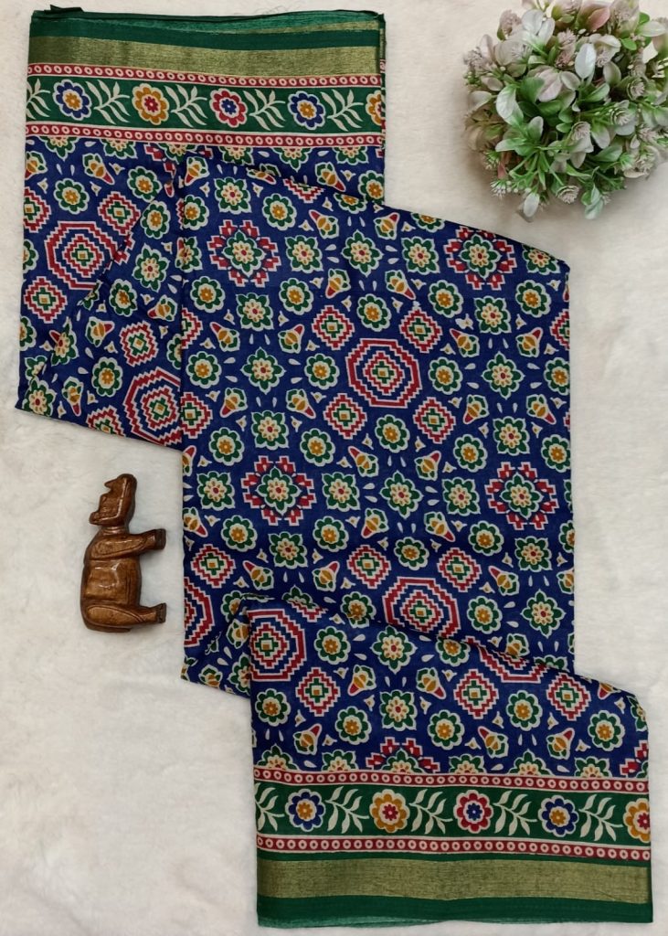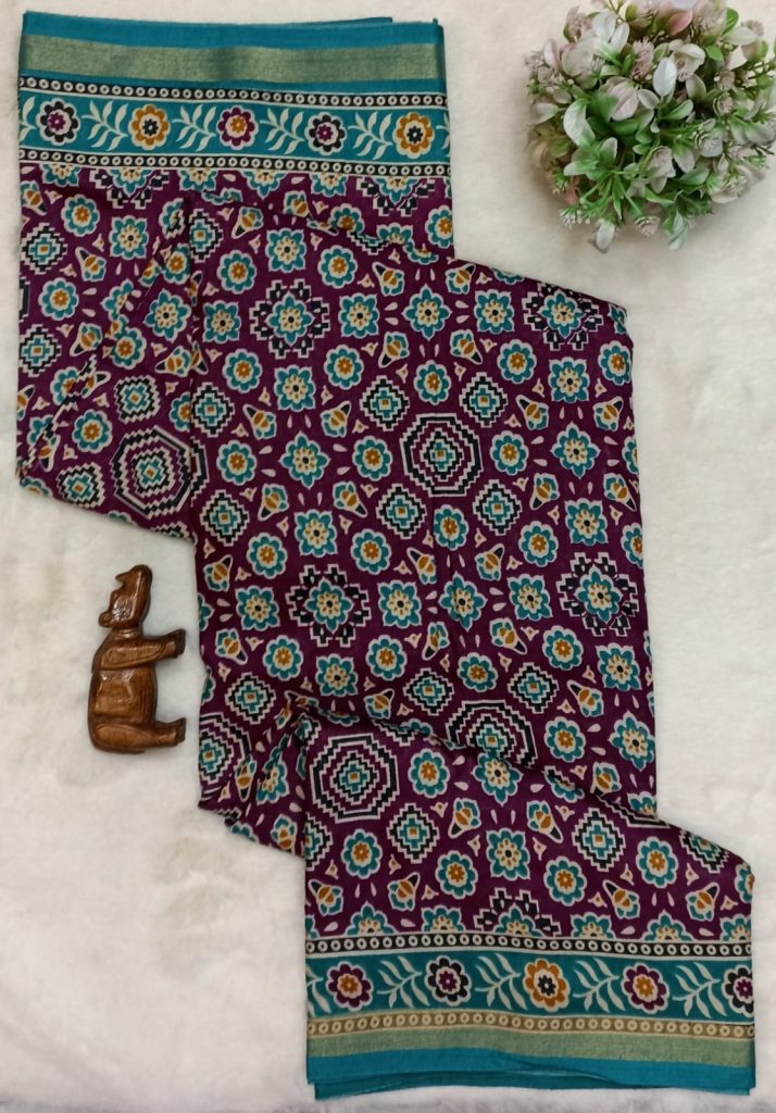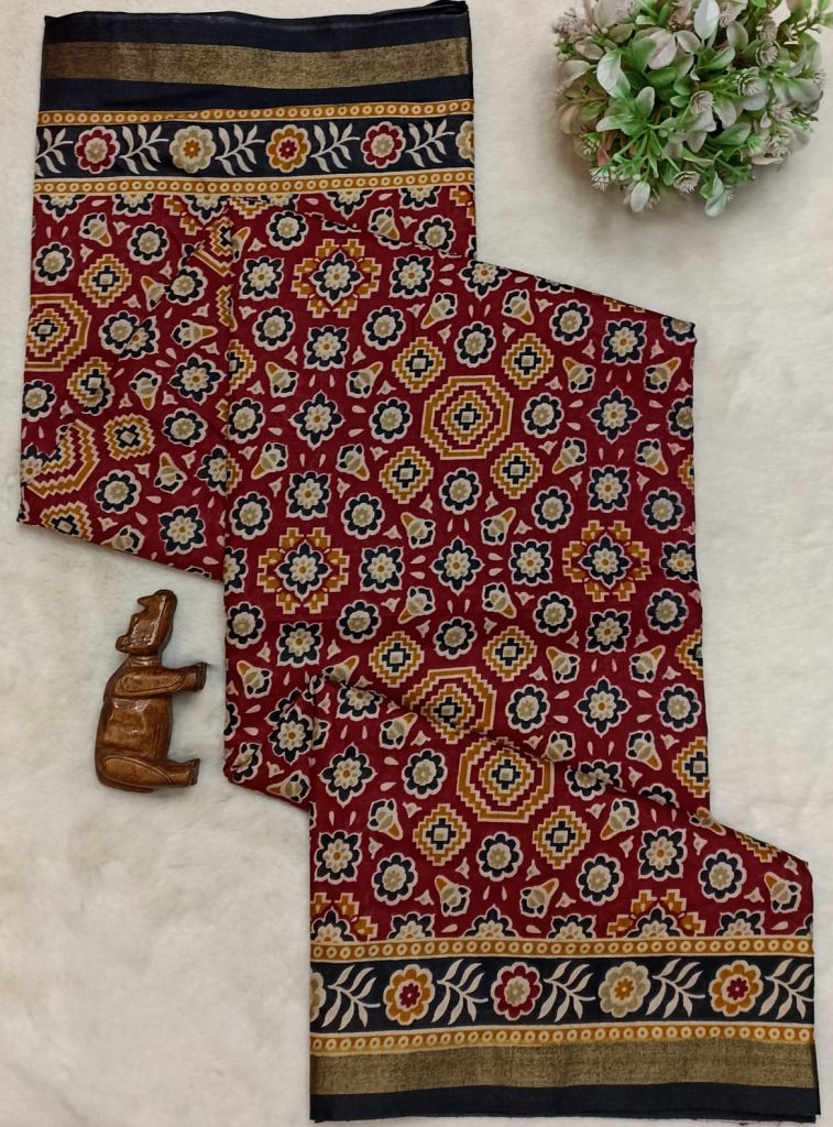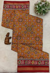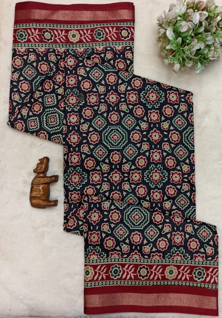 Exclusive Ajrak Print soft Chanderi silk with attached BP