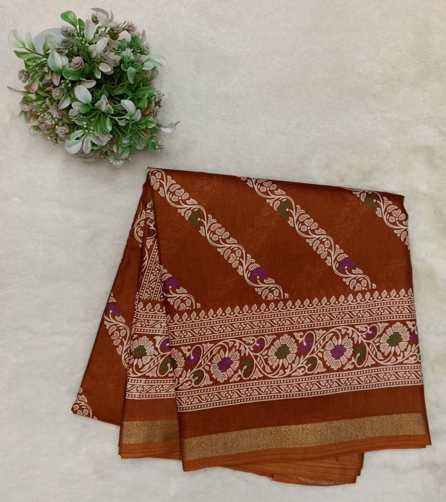 Exclusive Ajrak Print soft Chanderi silk with attached BP