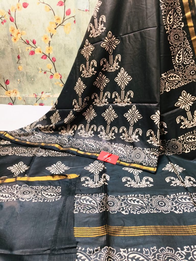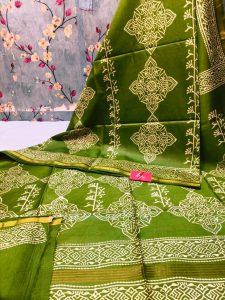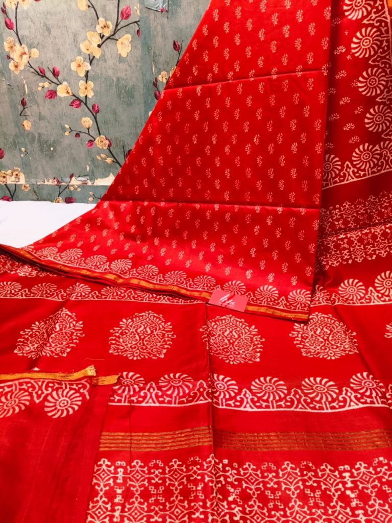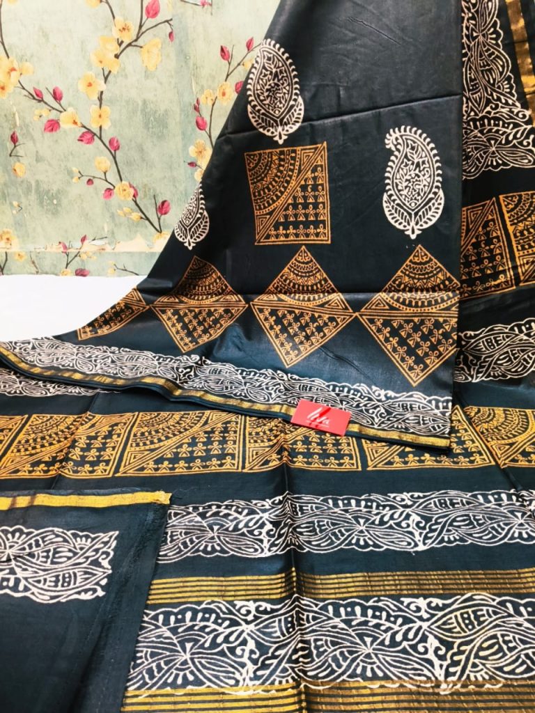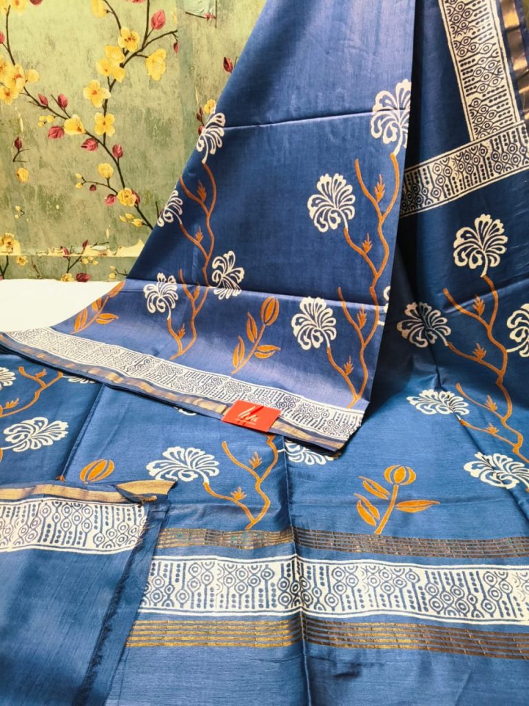 Exclusive Chanderi Silk Hand Block print with attached BP Rs