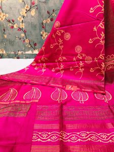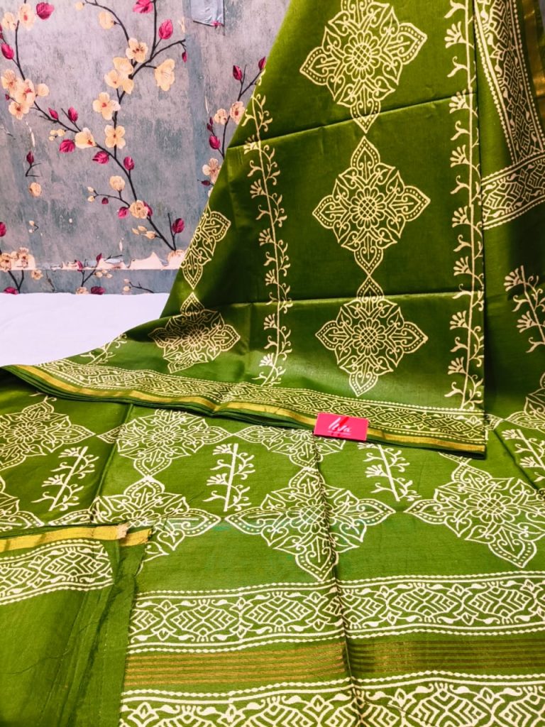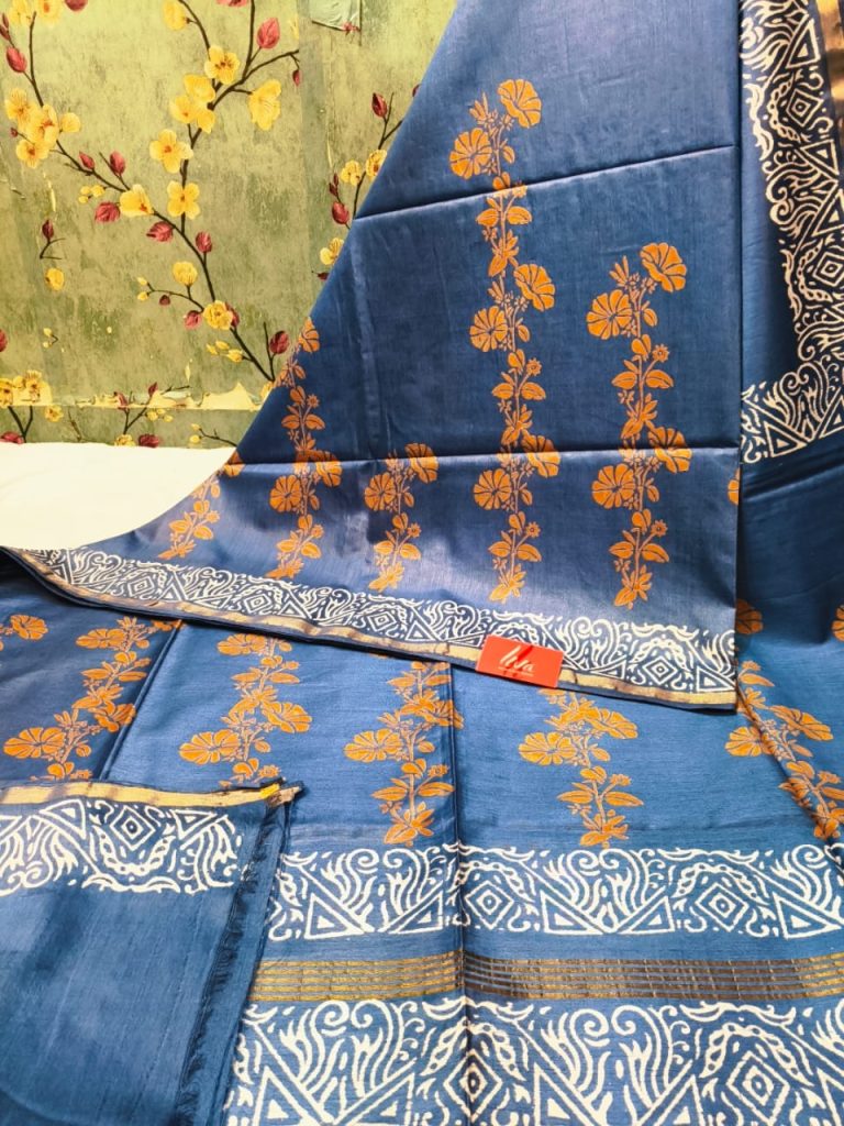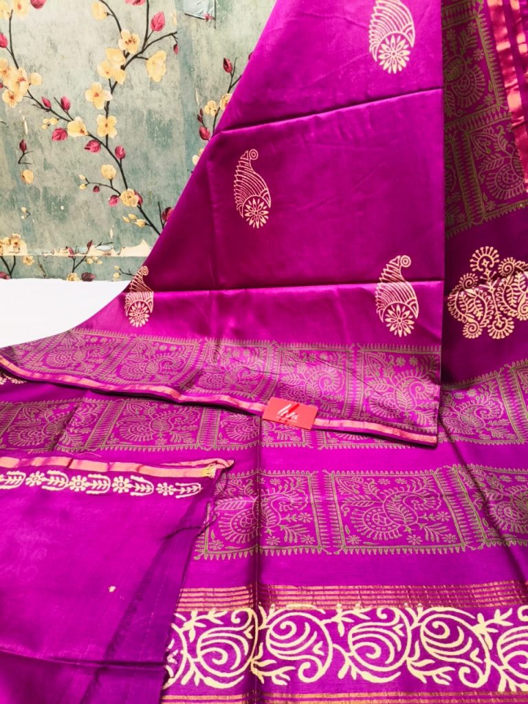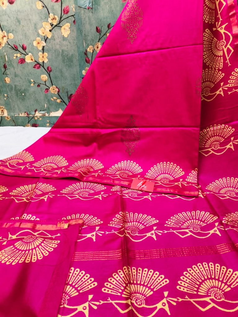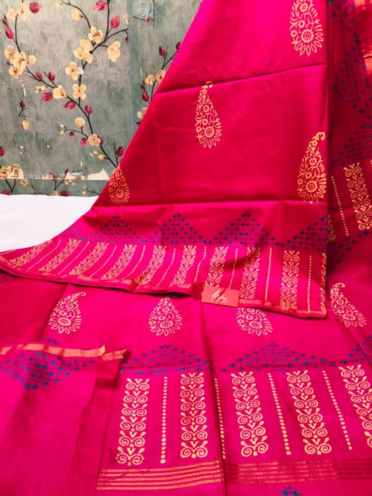 Exclusive Chanderi Silk Hand Block print with attached BP Rs