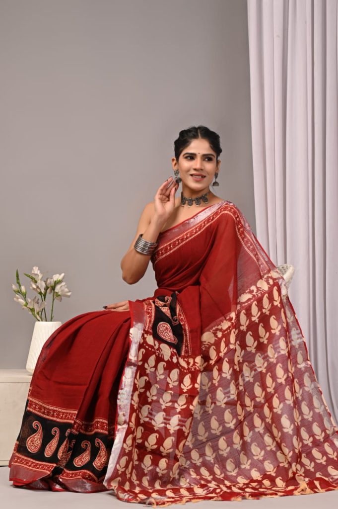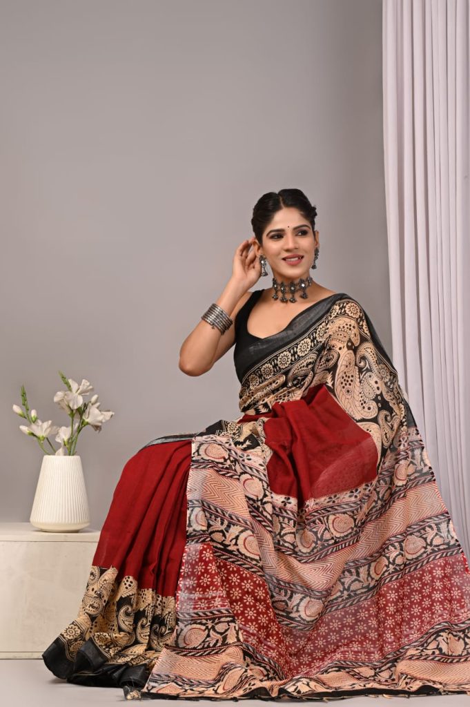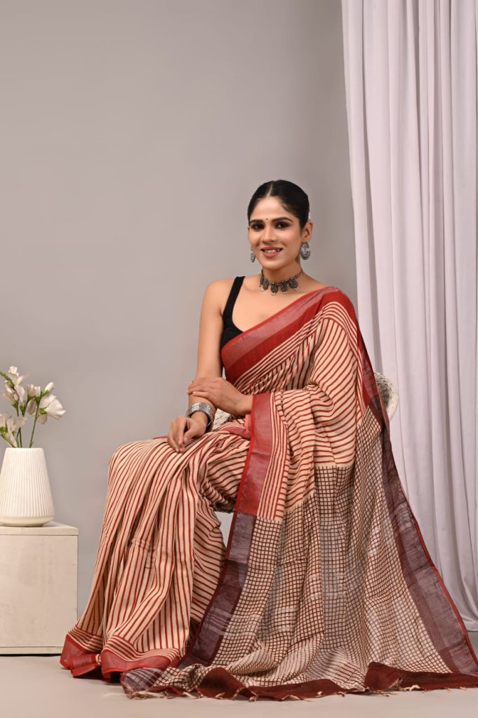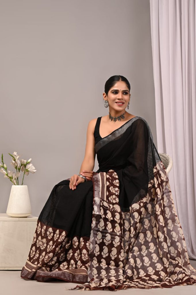 Exclusive cotton LINEN Pure hand block Print with attached BP