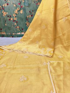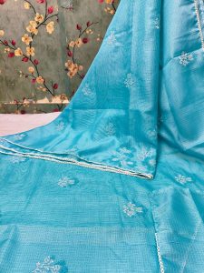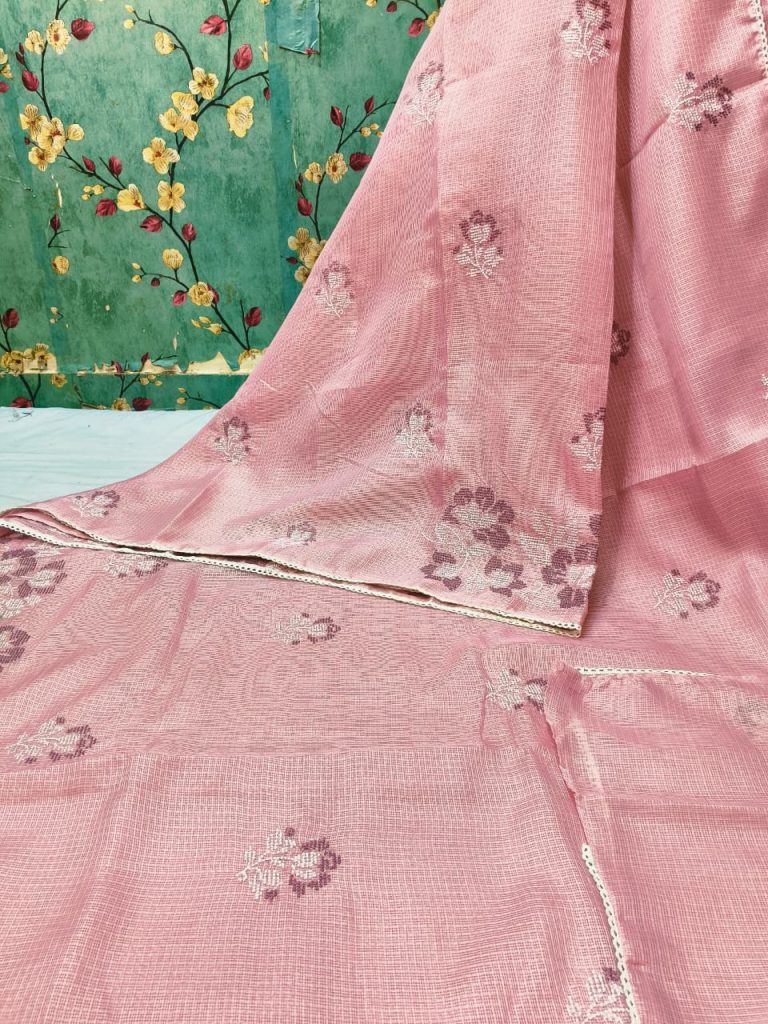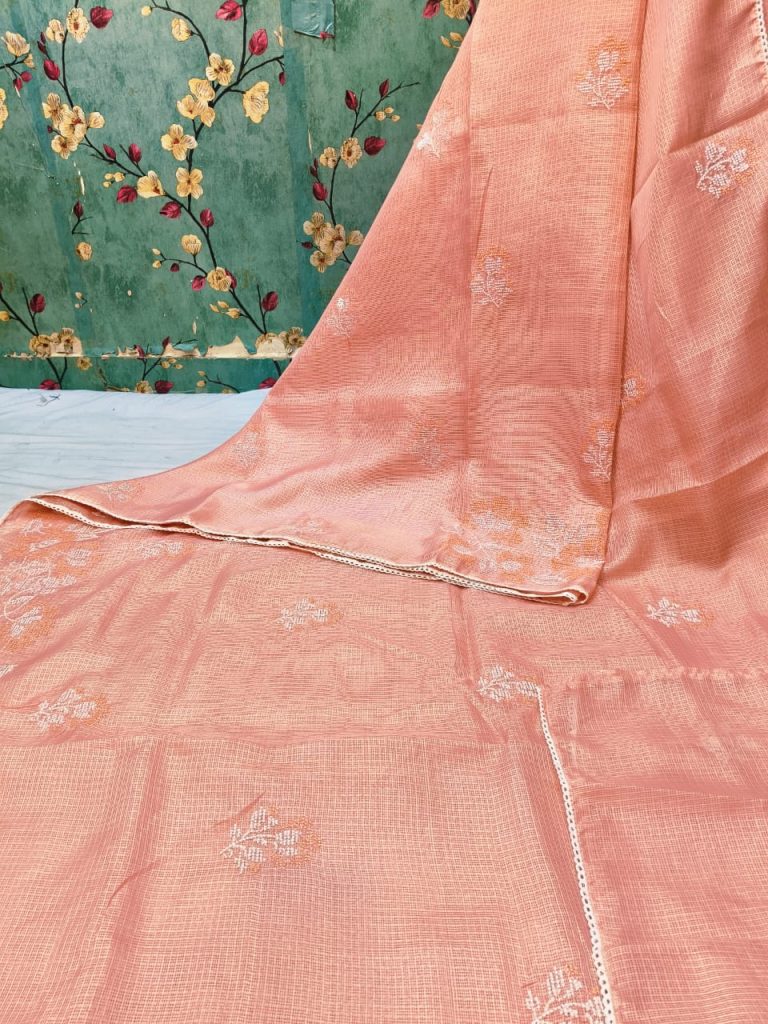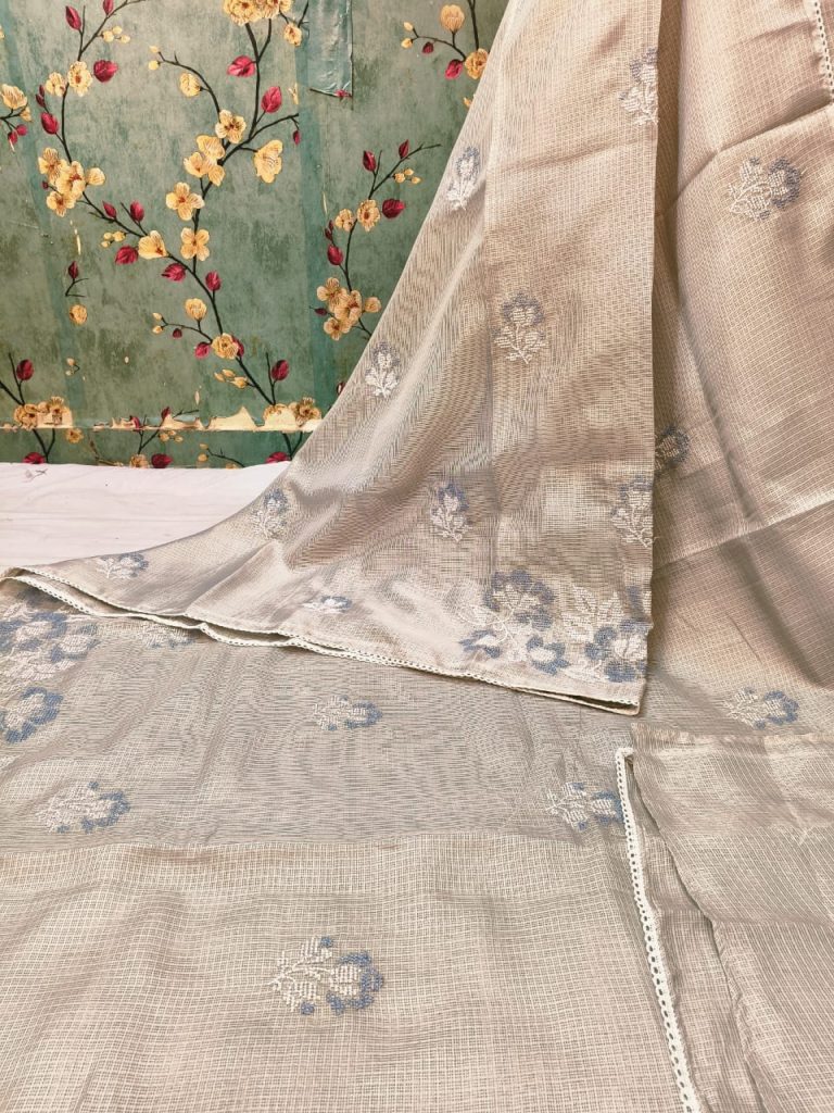 Exclusive kota Embroidery on full saree with attached BP