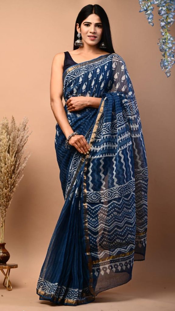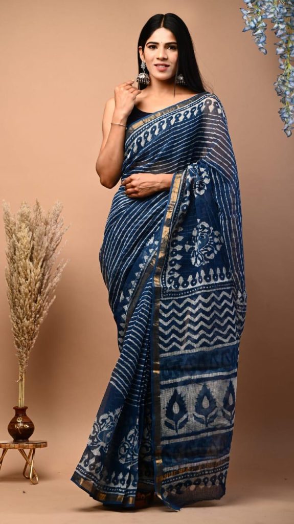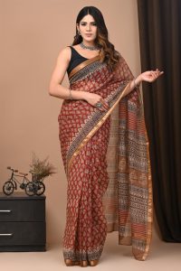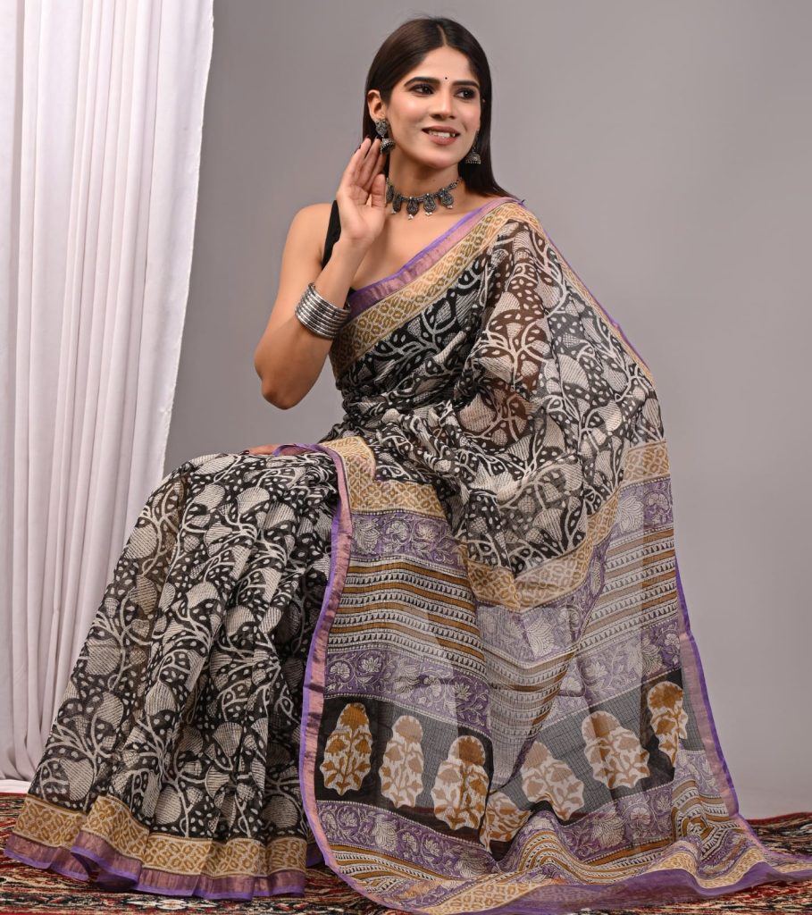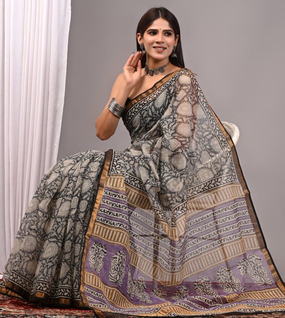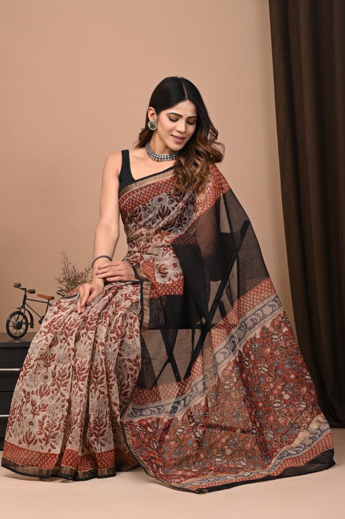 Exclusive Premium Kota Doria Hand block print with attached BP
