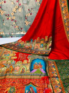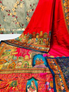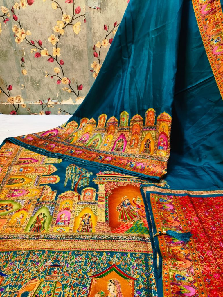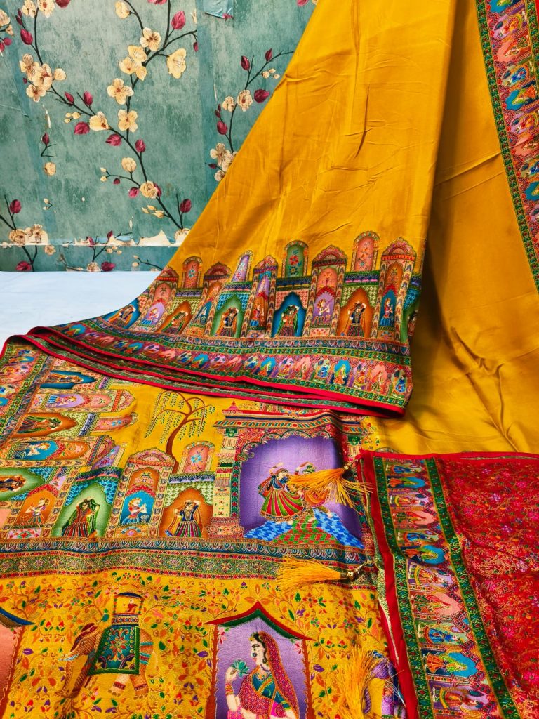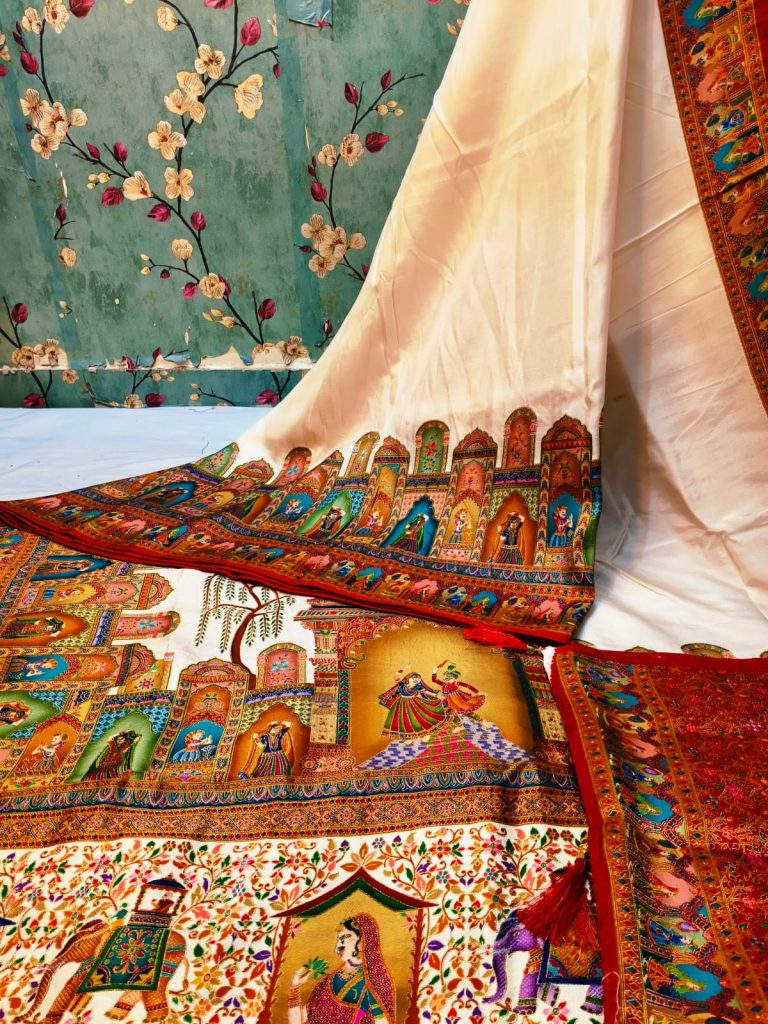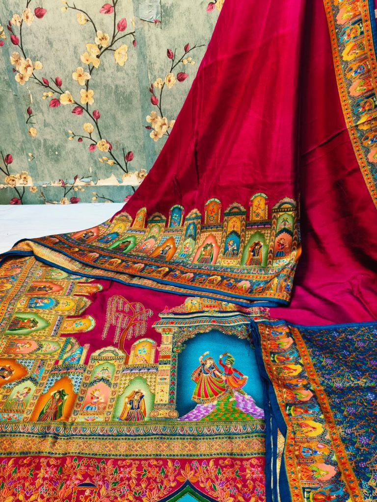 Exclusive Pure viscose Pasmina position Print weaving design with rich Pallu with attached BP